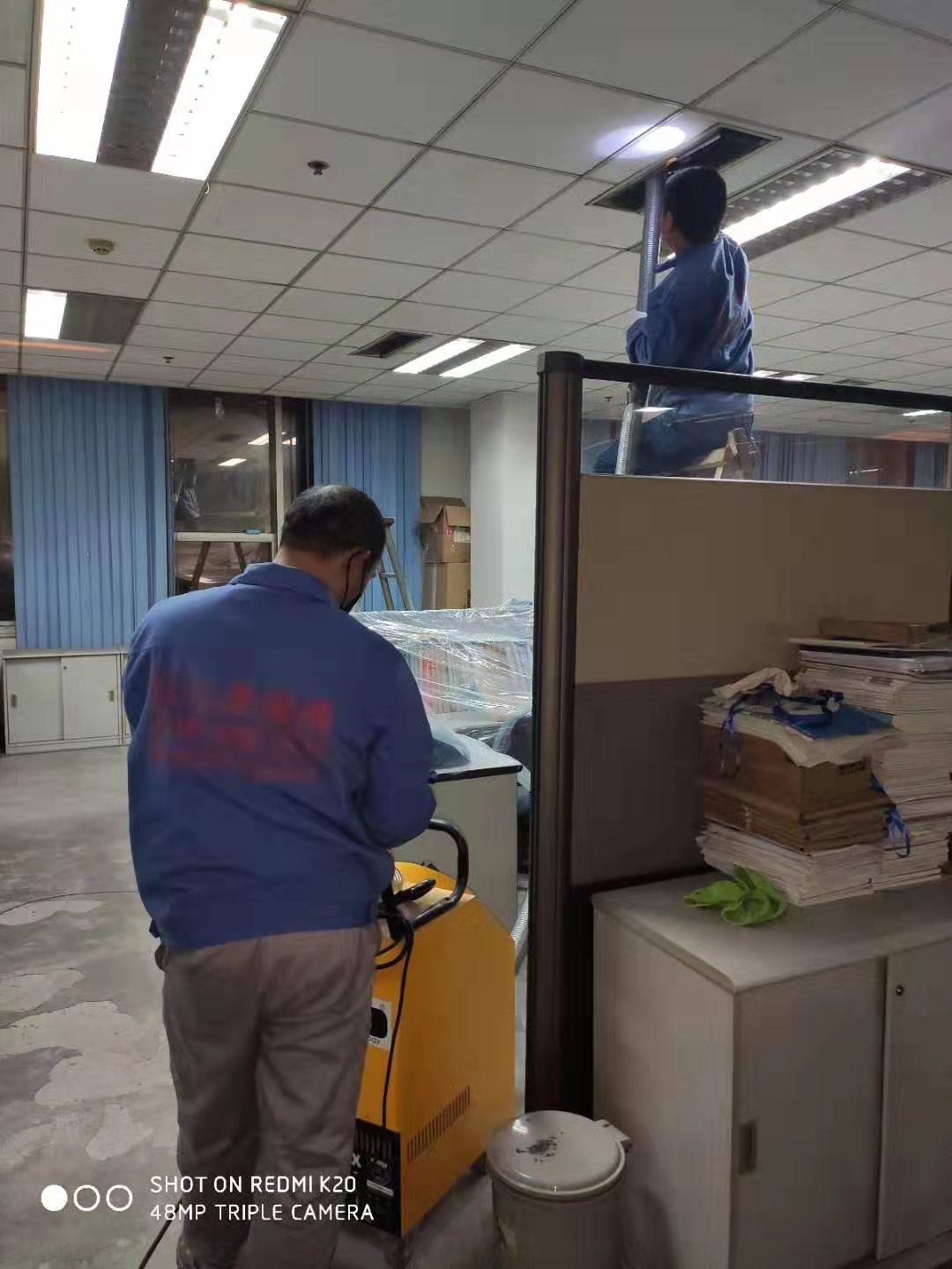 地奧藥業集團中央空調風管清洗消毒,師傅認真嚴格按要求施工。